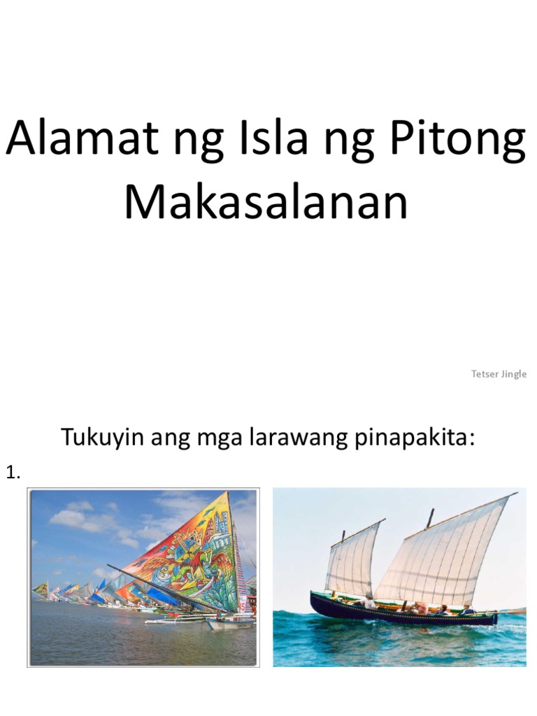 Ang kanilang tirahan ay nasa bayan ng Dumangas isang baying nasas gawing hilagang-silangan ng lalawigan ng Iloilo na bahagi ng isla ng Panay. ALAMAT NG ISLA NG PITONG MAKASALANAN Sa paksang ito ating babasahin ang buod ng alamat ng Isla ng Pitong Makasalanan. Buong lakas na sumagwan ang ama para mahabol ang kanyang pinakamamahal na mga anak subalit lubhang mabagal ang kanyang.